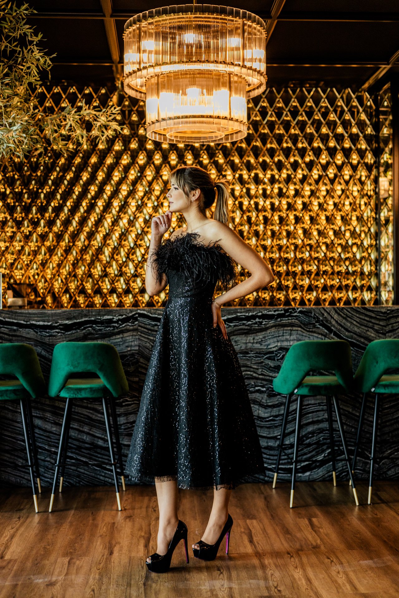 Este vestido midi da coleção Aire Barcelona na cor preto é a perfeita definição de sofisticação e elegância. Com um design luxuoso, detalhes glamorosos e uma silhueta impecável, é ideal para eventos de gala, festas noturnas e ocasiões especiais.