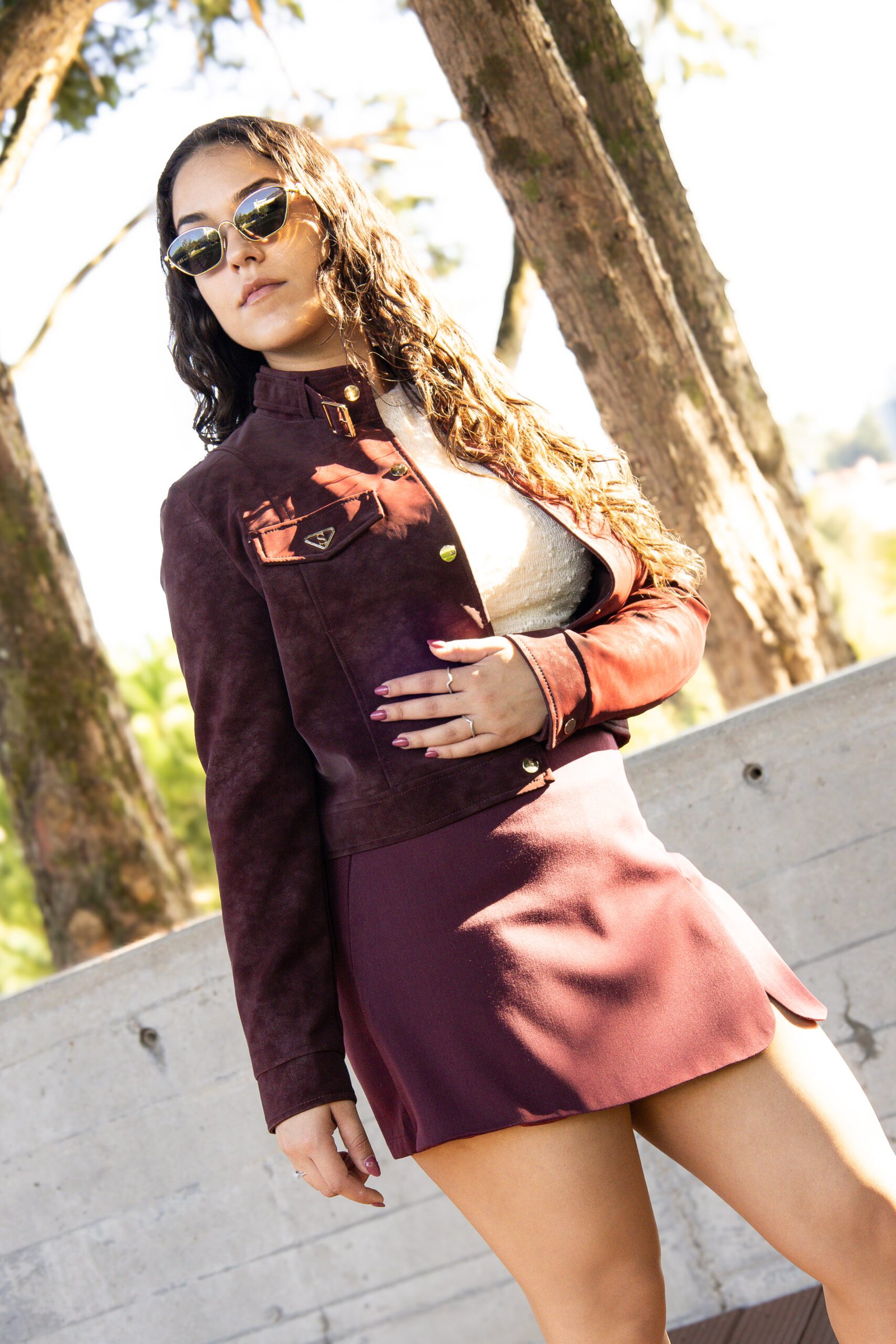 VESTIDO MIDI EM PELE DE CAMURÇA