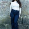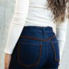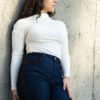 De cintura subida, estas calças modelam a silhueta de forma confortável e favorecedora. O tecido resistente, mas com um toque suave, garante liberdade de movimentos e um ajuste perfeito ao corpo. Possuem bolsos à frente e atrás, passadores de cinto e fecho frontal com botão metálico e fecho de correr.