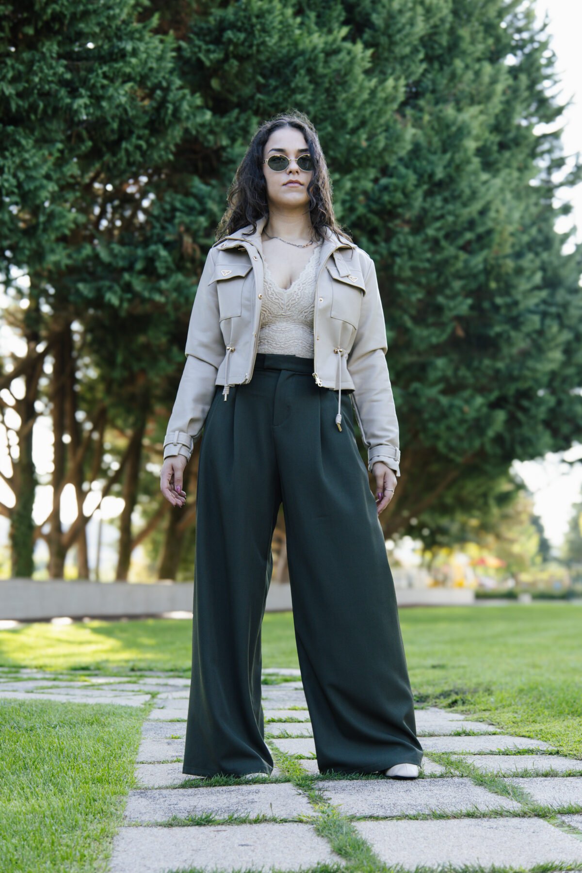 Seja para um dia de trabalho exigente, um passeio descontraído ou uma ocasião especial, estas calças de perna larga verde khaki adaptam-se a todos os contextos com modernidade e estilo. Uma peça intemporal e indispensável no guarda-roupa feminino, ideal para quem valoriza elegância e funcionalidade no dia a dia.