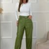 CALÇAS VERDE AZEITONA EFEITO PELE COM CINTO