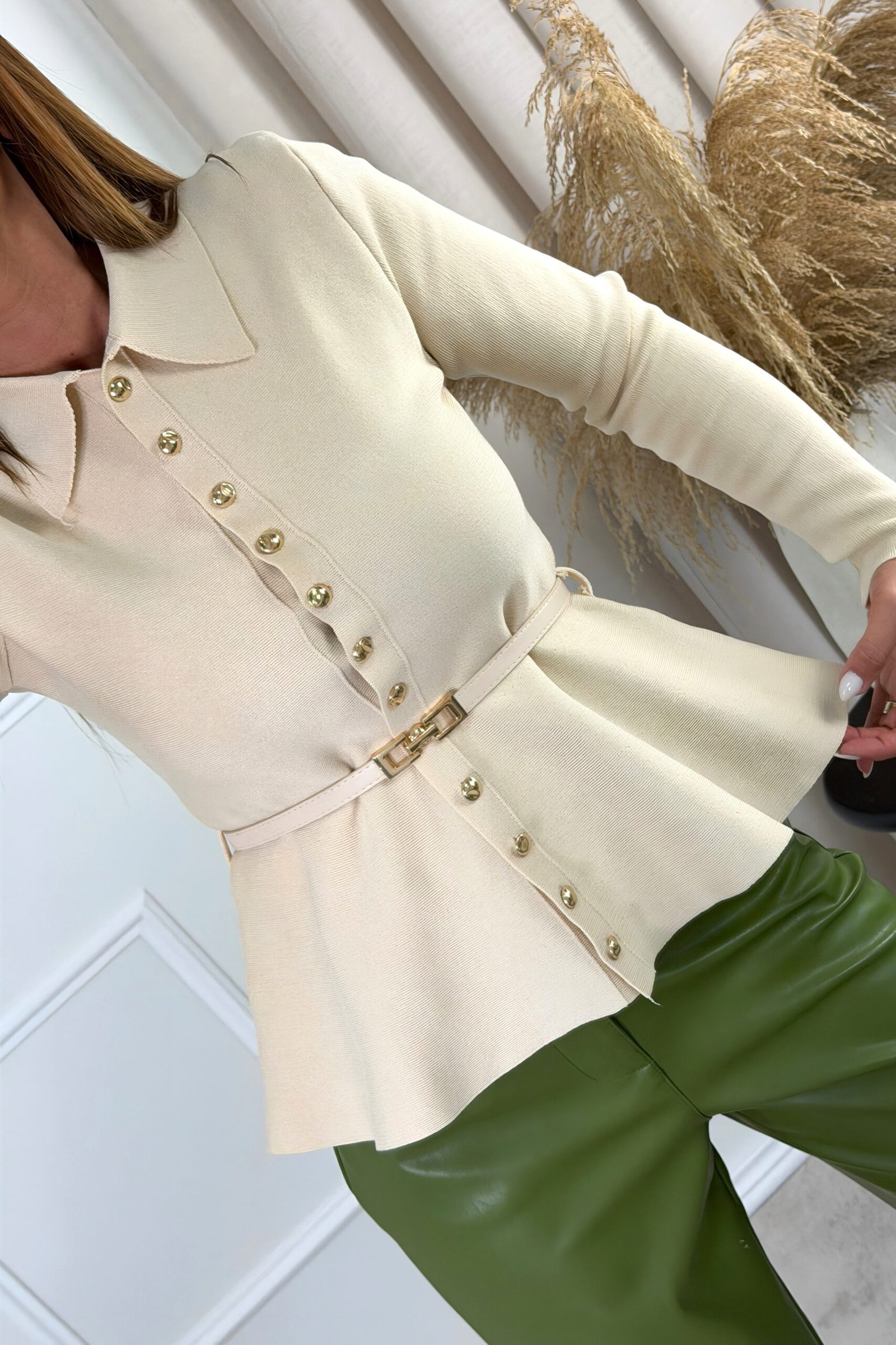 CARDIGAN BEGE COM BOTÕES EM DOURADO
