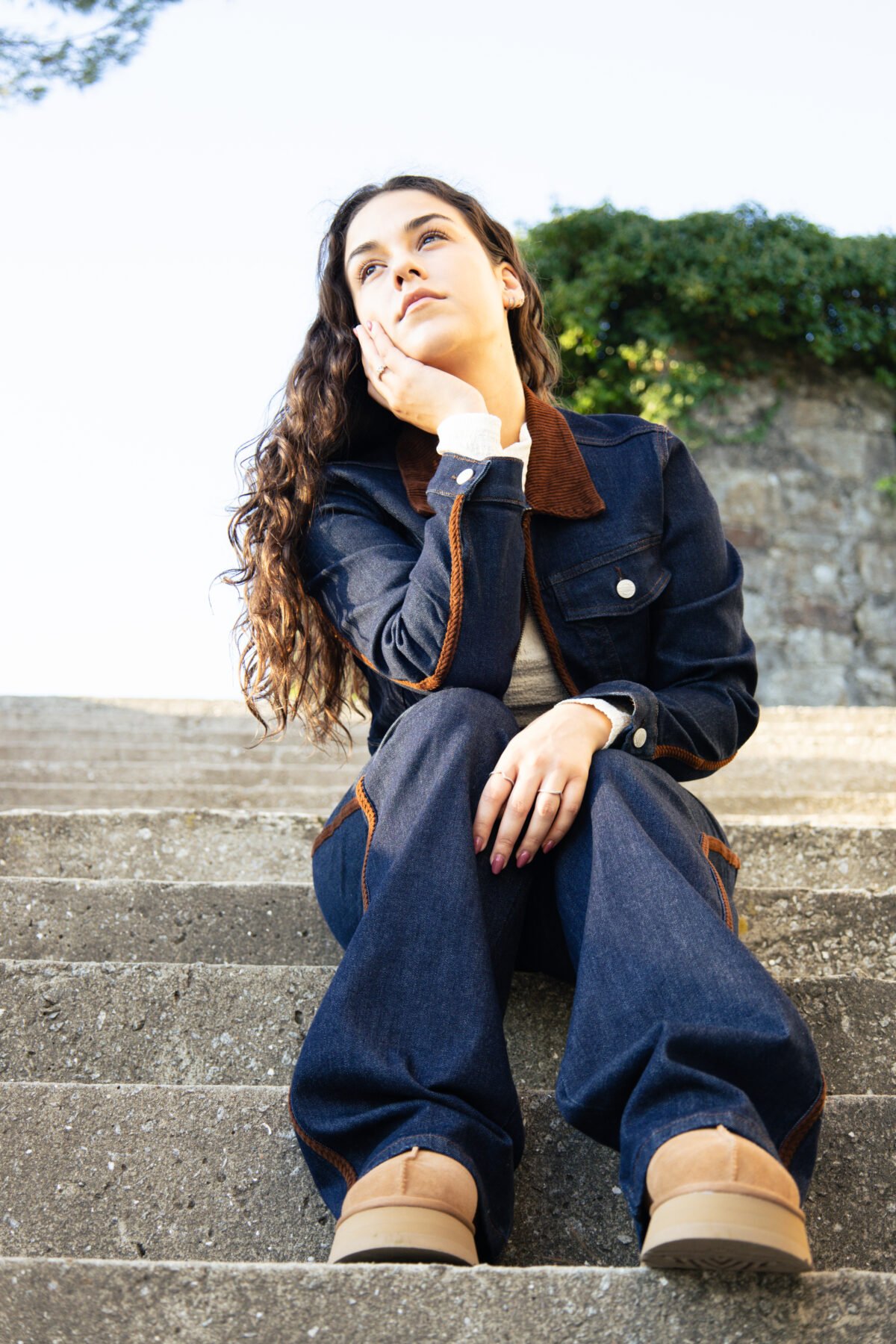 Este casaco é extremamente versátil — combina facilmente com calças de ganga para um look total denim, com saias midi para um contraste de estilos, ou sobre vestidos leves, criando um visual equilibrado entre o clássico e o contemporâneo.