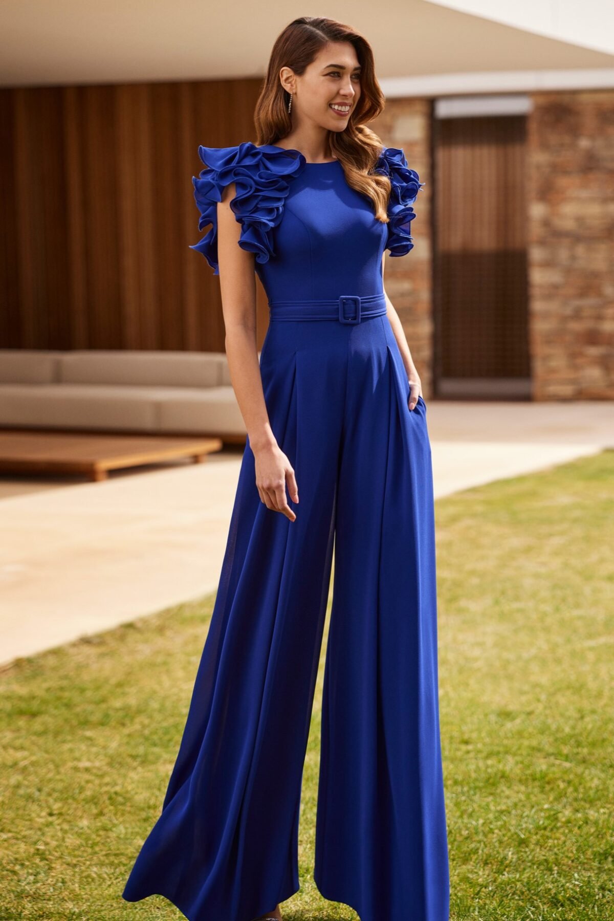 Este deslumbrante macacão azul royal é a personificação da elegância moderna, combinando sofisticação e impacto visual.