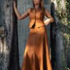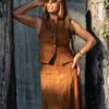Com cintura média e linhas que alongam a figura, esta saia adapta-se facilmente a diferentes tipos de corpo, proporcionando um caimento perfeito. O tom castanho quente é extremamente versátil, permitindo combinações harmoniosas com tons neutros como bege, branco e preto, ou coordenados mais ousados com cores vibrantes, como verde, azul ou laranja.