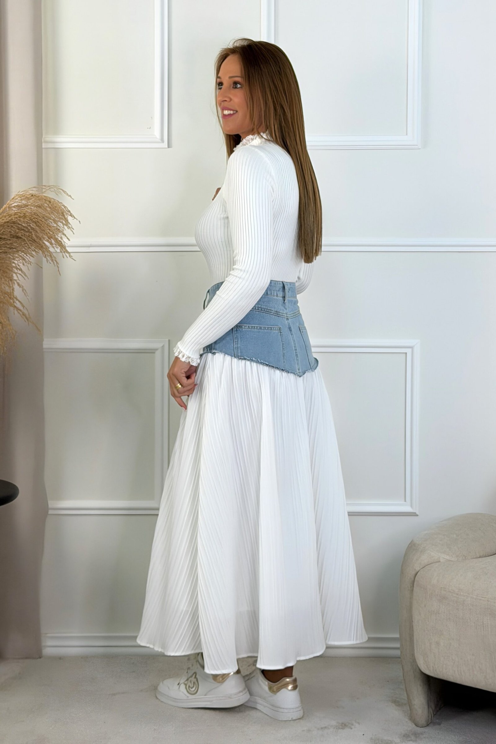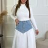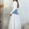 SAIA PLISSADA BRANCA COM CÓS EM GANGA