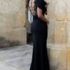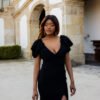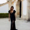 Imponente e sofisticado, este vestido preto é a escolha perfeita para quem procura elegância com um toque de ousadia.