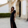 Este modelo é ideal para eventos noturnos em que o dress code exija sofisticação e presença. Use-o com sandálias de salto fino em preto ou metalizados, clutch estruturada e brincos longos para realçar o decote. O brilho subtil do lurex permite-lhe destacar-se sem exageros, sendo uma escolha segura e elegante.