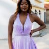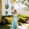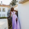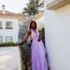 Disponível nas cores verde sage e lilás, este vestido é perfeito para casamentos, bailes ou festas de verão.