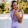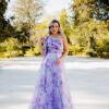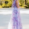 Celebre a delicadeza e o romantismo com este vestido de cerimónia lilás em tule estampado floral — uma escolha perfeita para eventos ao ar livre, casamentos ou ocasiões onde a leveza e a feminilidade são protagonistas. Com um corte fluido e estampado em tons suaves de rosa e lavanda, este modelo alia graciosidade e frescura com um toque etéreo.