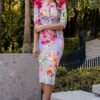 Celebre a elegância primaveril com este vestido midi floral, uma peça vibrante e feminina ideal para ocasiões especiais durante os dias mais luminosos. O corte justo valoriza a silhueta, enquanto os detalhes únicos nos ombros acrescentam um toque de sofisticação e originalidade.
