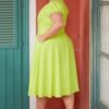 A cintura é marcada suavemente, realçando a silhueta antes de se abrir numa saia godé de caimento amplo e gracioso. O comprimento midi garante sofisticação, ideal para diferentes ocasiões — desde eventos diurnos, como batizados, almoços e festas ao ar livre, até celebrações mais informais ou descontraídas.