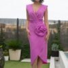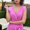 Disponível em três cores vibrantes — azul-marinho, fúchsia e azul turquesa — este vestido adapta-se a diferentes estilos e ocasiões, desde casamentos, batizados e festas de verão ou jantares formais. É uma escolha acertada para mulheres que procuram um visual impactante, jovem e refinado.