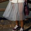A versatilidade é um dos maiores trunfos deste modelo. Pode ser usado como vestido, valorizando o tule como protagonista para um visual arrojado e elegante, ideal para eventos especiais ou saídas onde se pretende destacar. Por outro lado, funciona igualmente como colete comprido, usado sobre calças, vestidos ou saias, elevando de imediato qualquer coordenado. Além disso, pode ser facilmente combinado com t-shirt, blusas ou camisolas, criando diferentes camadas e estilos de acordo com a ocasião ou estação do ano.