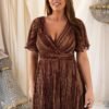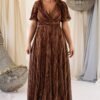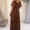Este vestido longo é confecionado em tecido lurex, leve e fluído na tonalidade bordo. Enriquecido com delicados fios dourados que adiciona um brilho subtil. Seu design elegante apresenta um decote em V transpassado, que valoriza o colo e proporcionando um caimento confortável.