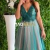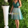 VESTIDO CURTO VERDE COM TULE E BORDADO EFEITO PRINCESA