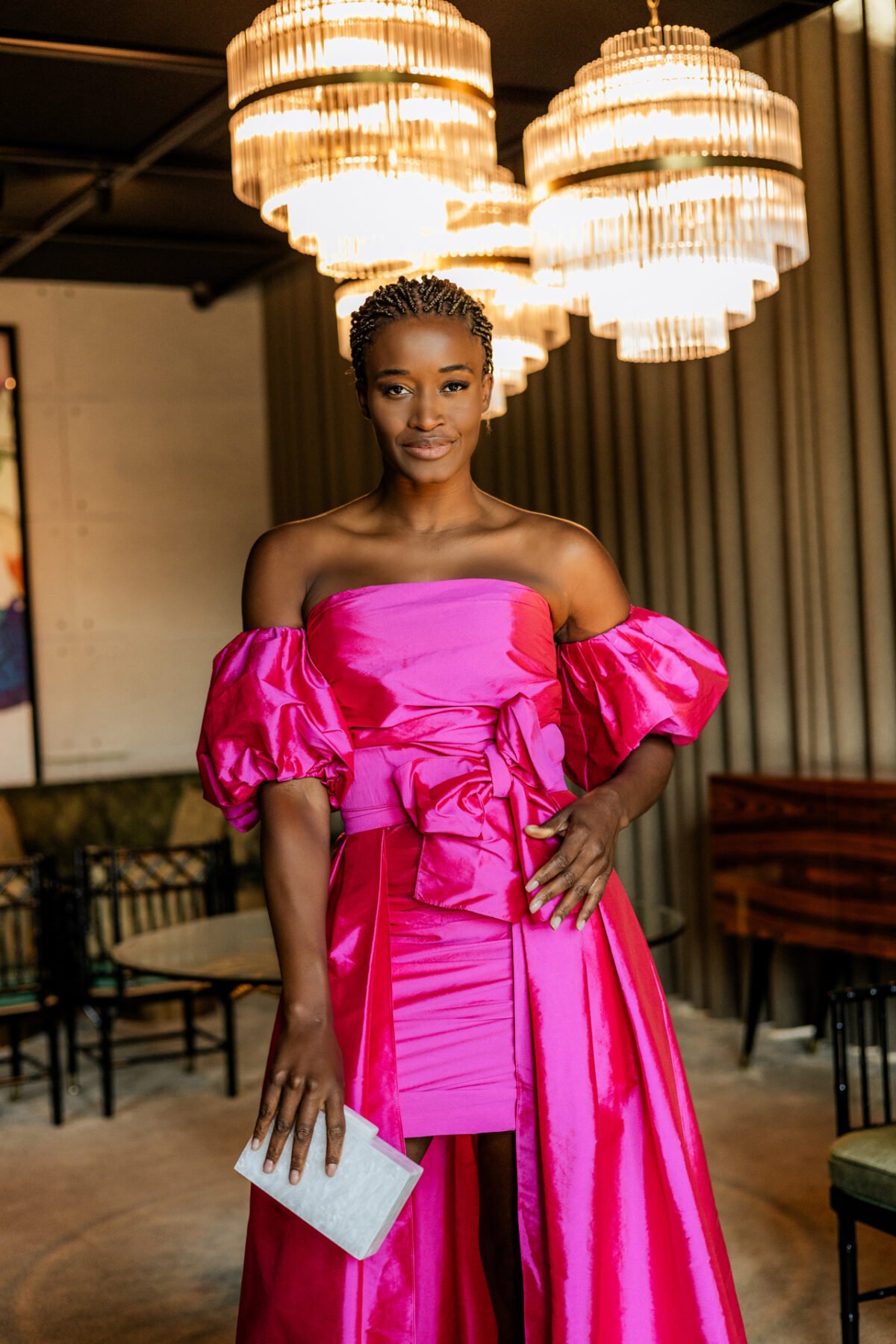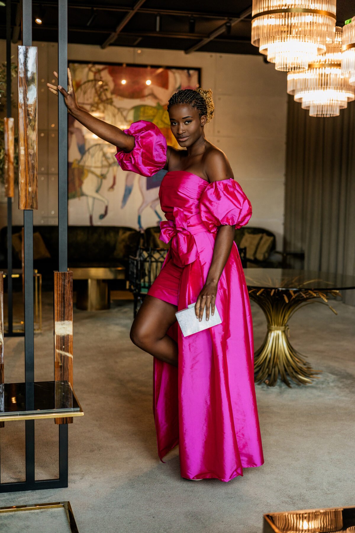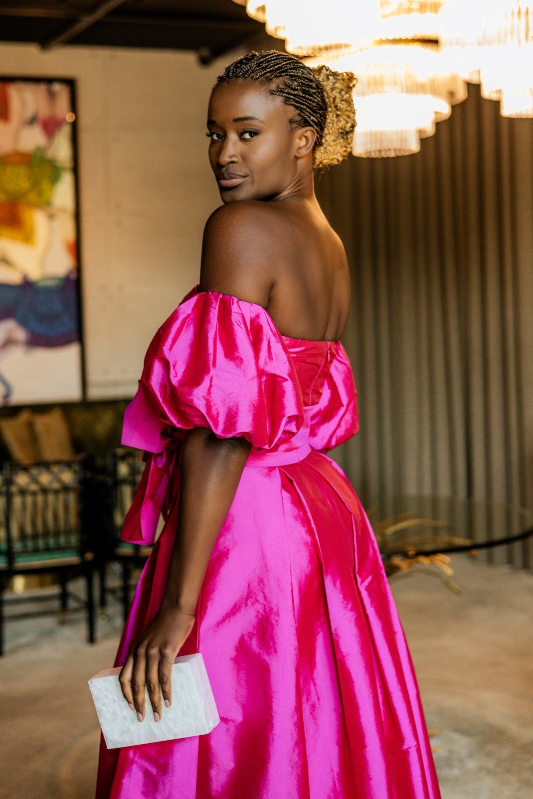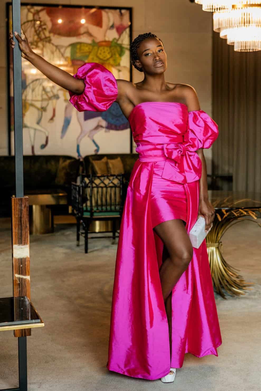 Este vestido de festa dois em um, confeccionado em tafetá, combina elegância e modernidade, permitindo transformar o look com praticidade e estilo. Ideal para ocasiões especiais como casamentos, bailes e eventos de gala, ele se adapta a diferentes momentos da celebração.