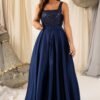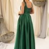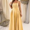 A parte superior é composta por um corpete em lantejoulas, com decotes quadrados e alças largas, conforto sustentação e um toque glamoroso. O brilho é equilibrado com uma saia longa em tecido acetinado, fluido e com caimento impecável. E o toque especial? Bolsos laterais discretos e super práticos, perfeitos para quem gosta de aliar funcionalidade ao estilo.
