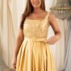 A moda encontra o brilho neste vestido de cerimónia que é puro charme! Ideal para madrinhas, convidadas ou para eventos especiais, o modelo aposta num contraste harmonioso entre o corpo em lantejoulas e a fluidez da saia, garantindo um visual sofisticado e delicado.