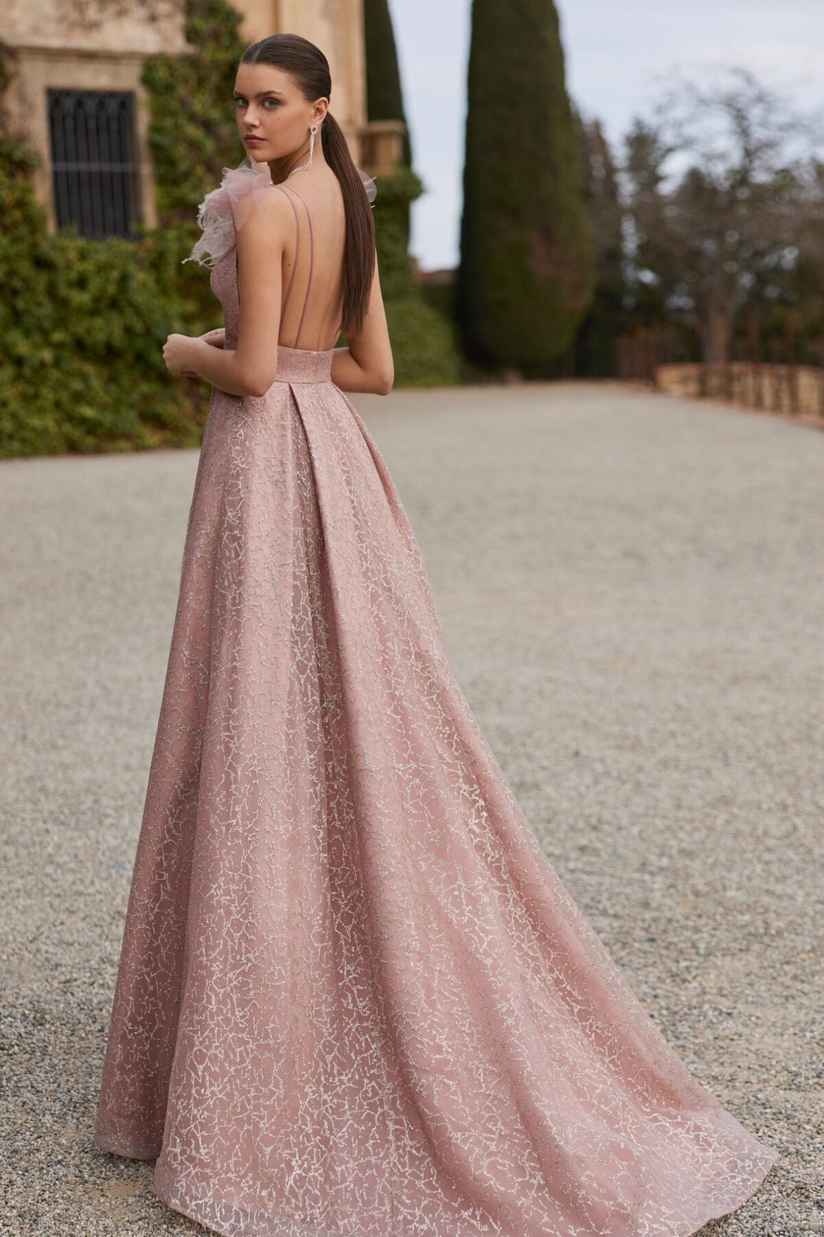 Este vestido longo de festa da Marfil Barcelona , confecionado em organza com glitter , é a escolha perfeita para um look elegante e sofisticado.