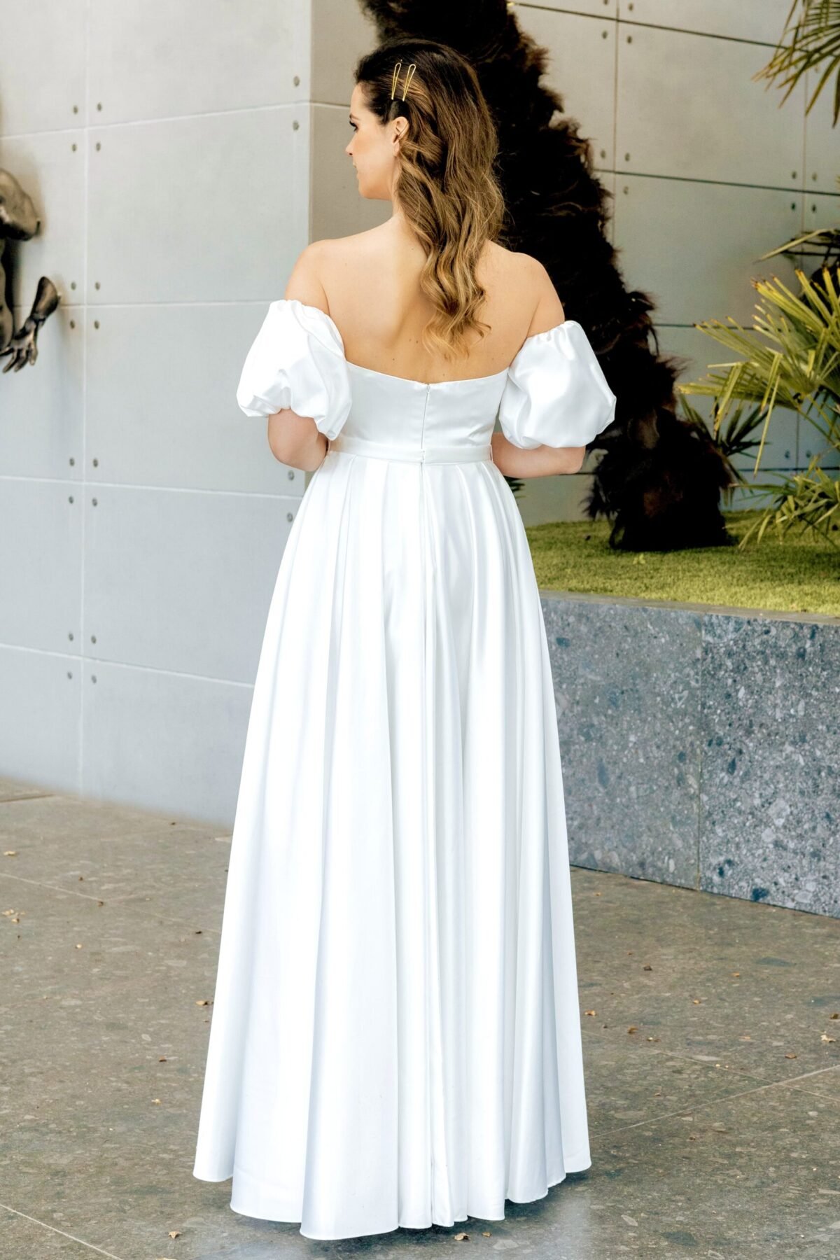 Este encantador vestido longo da marca Marfil Barcelona, uma peça que combina o estilo romântico com um toque moderno, ideal para festas e eventos especiais. Este vestido versátil pode ser usado tanto por convidadas ou por noivas, garantindo um visual inesquecível.