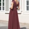 Disponível nas cores marsala red , um tom profundo e envolvente de vermelho terroso, e Moonlight Jade , um azul suave e sofisticado, este vestido é ideal para mulheres que desejam um look clássico, atemporal.
