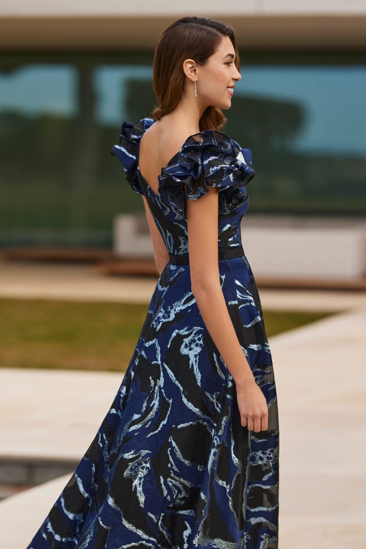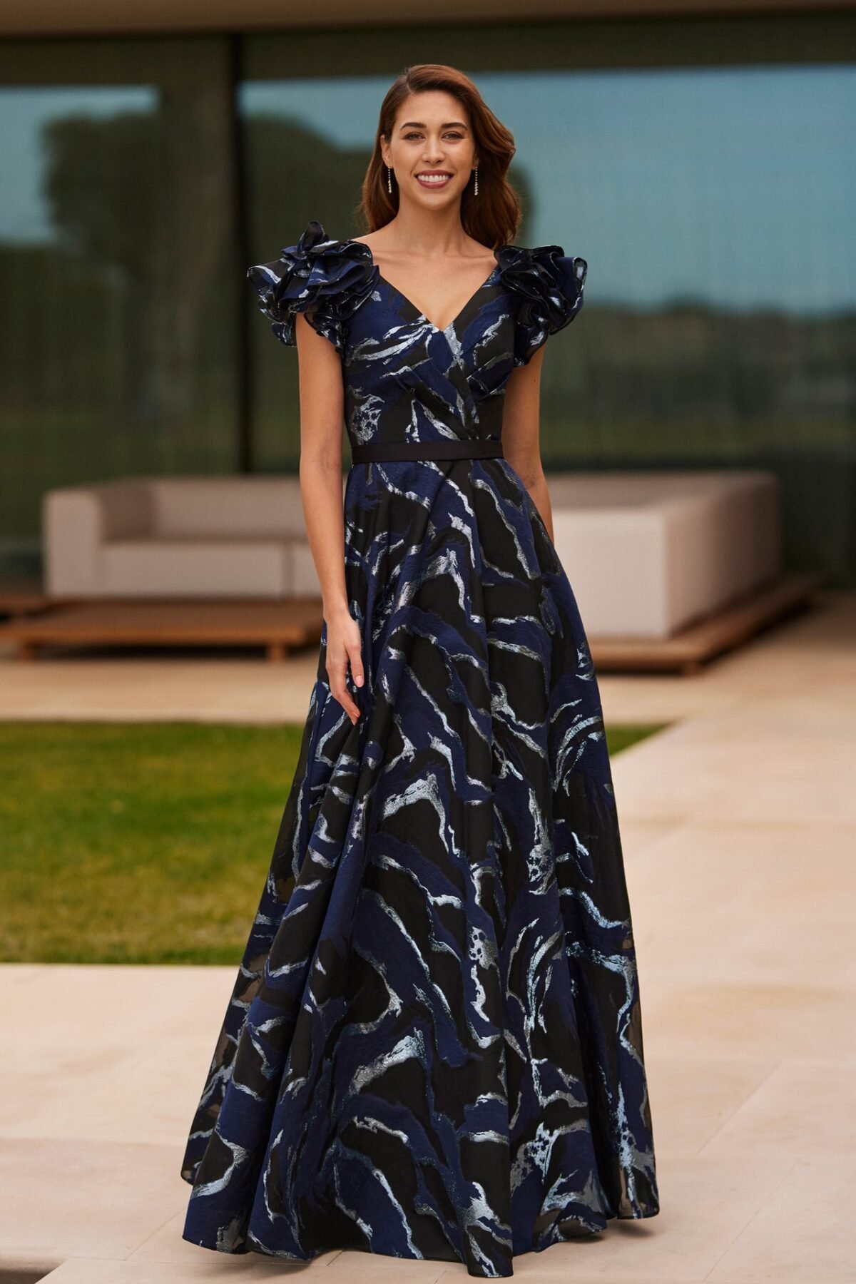 Este vestido de festa estampado da Marfil Barcelona é a definição de moderno, combinando um design sofisticado com um toque artístico. Com um caimento impecável e detalhes exuberantes, é a escolha perfeita para quem deseja um visual impactante e exclusivo.