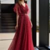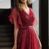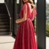 Este vestido de festa bordado em vermelho passion da Marfil Barcelona é a personificação da sofisticação e do luxo. Feito para mulheres que procuram um look refinado e glamouroso, este modelo encanta pelos seus detalhes em brilho e caimento impecável.