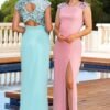 VESTIDO LONGO ROSA COM DETALHES FLORAIS NOS OMBROS E COSTA