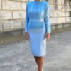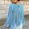 VESTIDO MIDI AZUL BEBÊ COM FRANJAS E MANGAS LONGAS