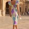 O vestido midi floral elegante é a escolha perfeita para quem procura um look feminino, sofisticado e atual para ocasiões especiais. Desde o primeiro olhar, destaca-se pelo padrão floral delicado, pelas mangas estruturadas e pela silhueta ajustada que valoriza a figura com equilíbrio. Além disso, o comprimento midi torna este modelo extremamente versátil e apropriado para diferentes tipos de evento, desde celebrações formais a ocasiões mais descontraídas.