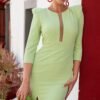 Destaque-se com sofisticação e charme neste vestido midi na cor bege. Com um design moderno e elegante, ele apresenta mangas 3/4 ajustadas, ombreiras delicadas que estruturam o visual. O decote frontal vertical adiciona sensualidade na medida certa. Para um toque extra de ousadia e charme, a racha lateral valoriza as pernas e proporciona liberdade nos movimentos.