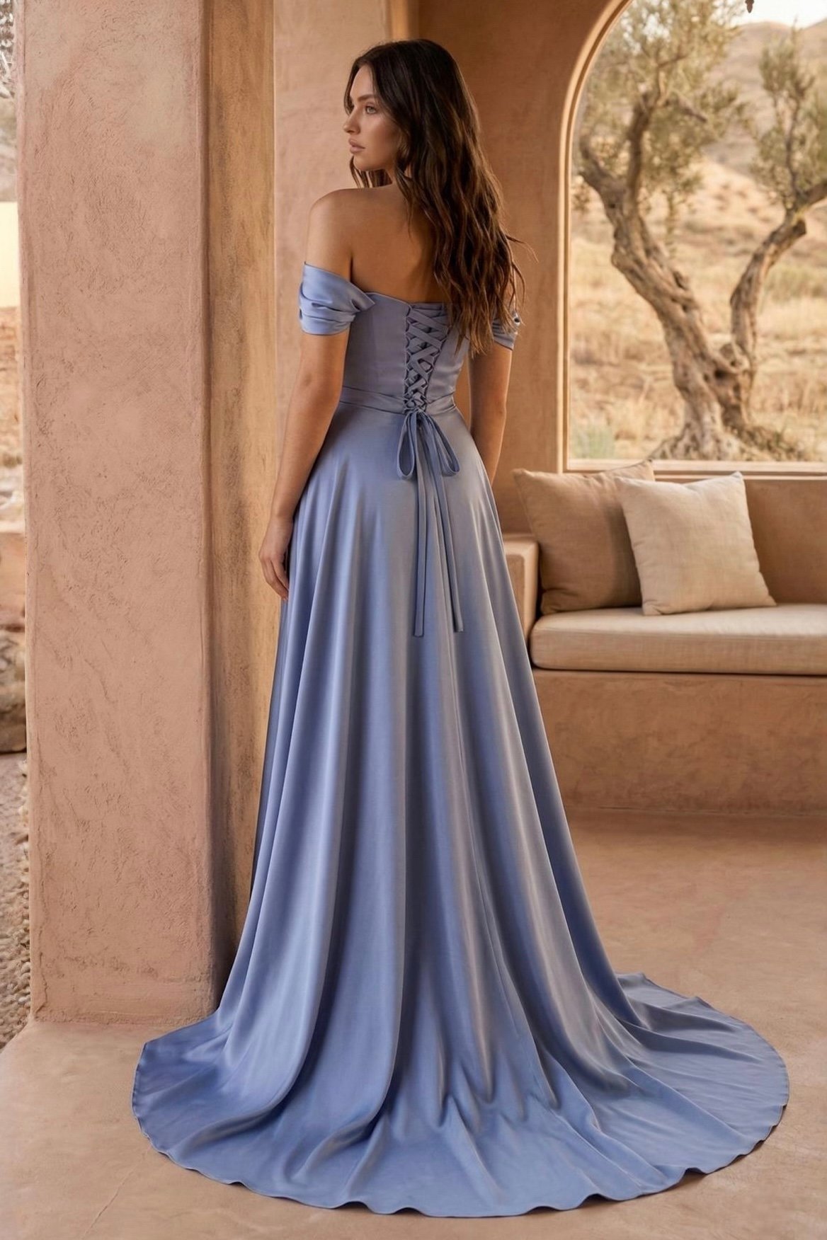 A saia comprida combina um caimento fluido com um efeito sobreposto que acompanha o movimento do corpo com leveza. Além disso, a abertura frontal ajuda a alongar visualmente a silhueta e confere um toque sensual na medida certa. Nas costas, o detalhe com atacadores reforça o ajuste ao corpo e acrescenta um acabamento romântico, sofisticado e muito favorecedor. Por isso, este vestido adapta-se muito bem a casamentos, bailes, galas, festas formais e outras celebrações especiais.