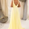 Encante com este deslumbrante vestido de cerimónia em tom amarelo suave, perfeito para eventos especiais como casamentos, galas ou festas formais. Confecionado em tecido crepe, este modelo proporciona movimento leve e um caimento impecável, realçando a silhueta com sofisticação.