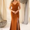 Moderno, elegante e cheio de atitude, este vestido longo é confecionado em crepe no tom terracota, uma aposta quente e ousada para eventos o seus próximo evento.