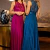 Encante com o charme clássico e o requinte contemporâneo do Vestido Grécia, disponível em três tonalidades intensas e sofisticadas: azul petróleo, fúcsia e azul celeste. Este modelo deslumbra com o seu corpete estruturado em tecido acetinado, realçado por aplicações delicadas de renda e um decote alto que valoriza o colo de forma subtil e elegante. As costas são adornadas com renda transparente, acrescentando um toque sensual ao look.